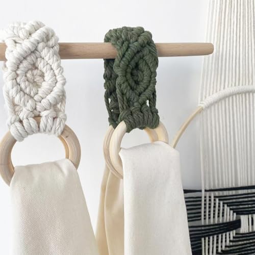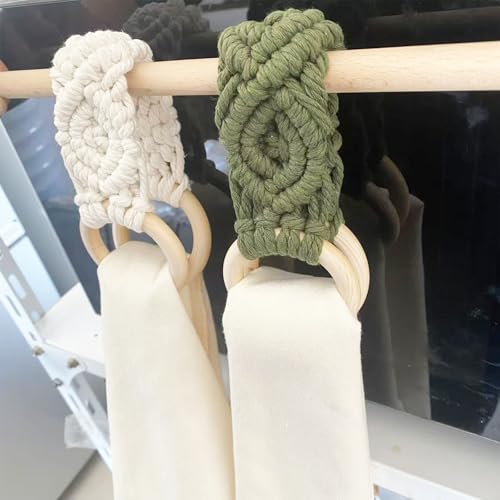 UHRMF - حامل فوط كروشيه يدوي الصنع، حامل فوط مطبخ بتصميم بوهو مكرمية، حامل حلقة لتعليق فوط اليد للمطبخ للكريسماس والانتقال لمنزل جديد وأعياد الميلاد وعيد الأم (2، لون بيج)