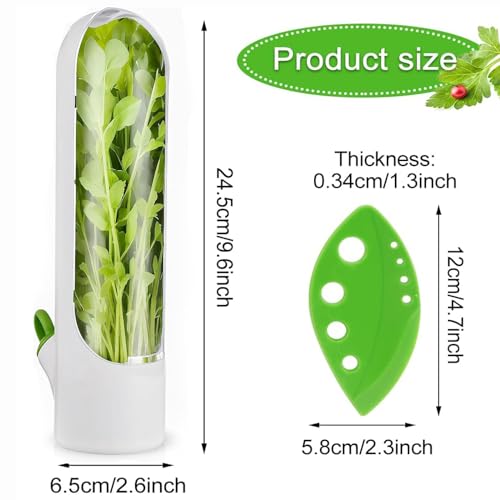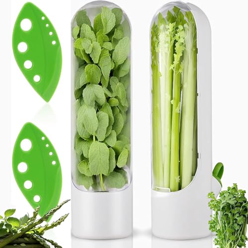 HIKKY - حافظة اعشاب للثلاجة، حاويات تخزين الكزبرة، حافظة الاعشاب للحفاظ على الخضروات الطازجة والخضراء والنعناع والبقدونس من قطعتين