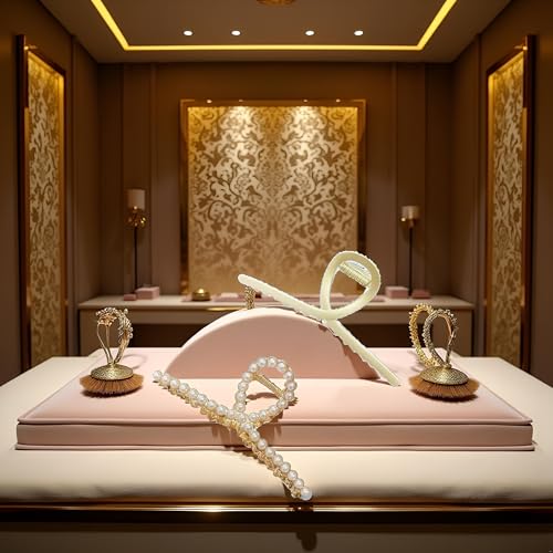 - تصميم فاخر: مخالب شعر معدنية ذهبية غير لامعة مزينة بلآلئ أنيقة تخلق مظهرًا راقيًا وأنيقًا لأي مناسبة