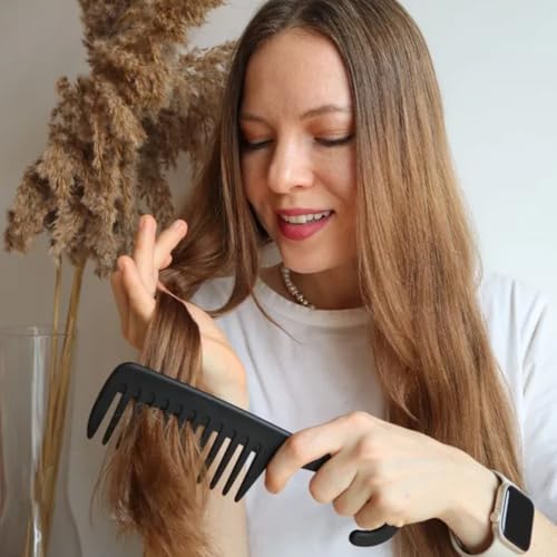 - مريح في الاستخدام: ينزلق مشط الاستحمام ذو الأسنان الكبيرة بسهولة عبر الشعر الطويل والمجعد لمساعدتك على إزالة التشابك بسهولة وحماية شعرك من التمزق، المقبض المنحني لمشط الاستحمام ذو الأسنان الكبيرة مصمم للتعليق، المقبض غير قابل للانزلاق، لذلك فهو سهل الاستخدام حتى عندما يكون مبللاً