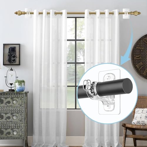 fashion mania - حوامل قضيب الستارة بدون ثقب، بدون ثقب أو مسامير، حوامل قضيب ستارة شديدة التحمل، خطافات قضيب ستارة لاصقة بدون مسامير، شماعات ستائر للجدار، دعامات تثبيت لاصقة لا تسبب تلف الحائط - 2 قطعة