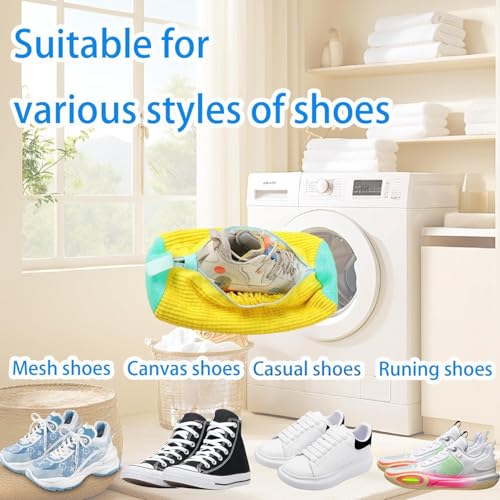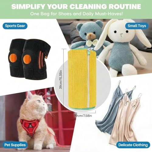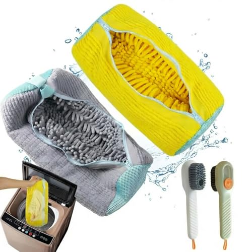 Generic - 2 كيس غسيل الأحذية لتنظيف عميق 360°وحماية للأحذية والغسالة من الخدش وقابل لاعادة الاستخدام - شنطة تنظيف الحذاء تأتى بسوستة مخفية ومقاس كبير يناسب كل الأحذية (1 اصفر و1 رمادي + فرشة تنظيف)