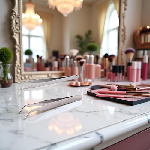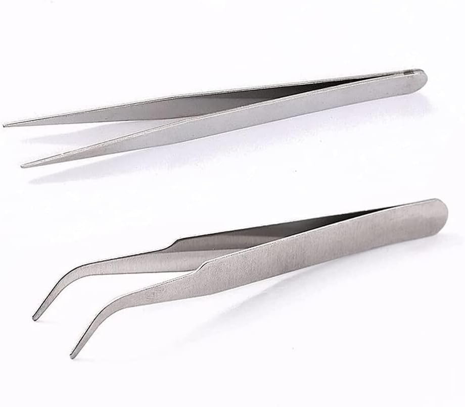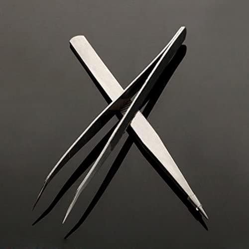 WsjiaboFux - مجموعة ملاقط فضية احترافية دقيقة من الستانلس ستيل مناسبة للحواجب والشعر والشعر المتضخم والشظايا والحلاقة وازالة الشعر، تصميم جميل بلون اسود من قطعتين