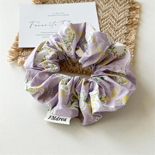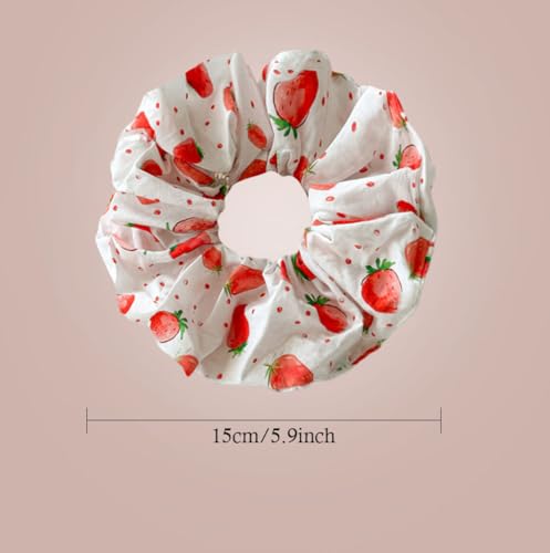DINPREY - ربطات شعر كبيرة من الدانتيل بتصميم زهور للنساء من قطعتين للشعر المجعد الرقيق والسميك والفاكهة والفراولة وقلب الحب، ربطات شعر استك لتسريحة ذيل الحصان للخريف (14 سم، زهرة الكرمة والفراولة)