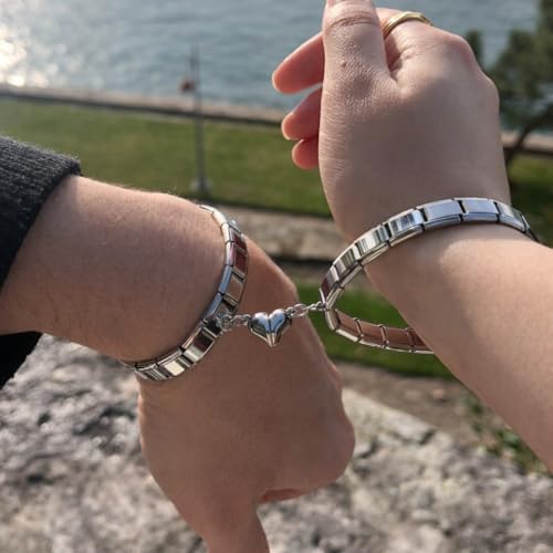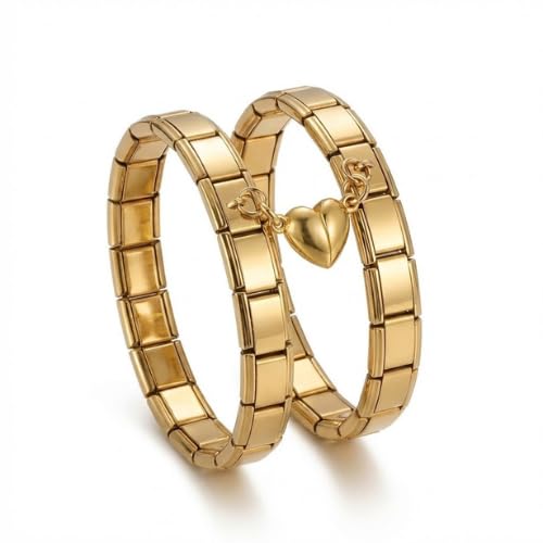 Generic - سوارين زوجي ستانلس ستيل بقلب متصل، مقاوم للصدأ والتآكل، إكسسوار رومانسي للهدايا اليومية والمناسبات، لون فضي وذهبي، تصميم مرن قابل للتعديل، قطعتان