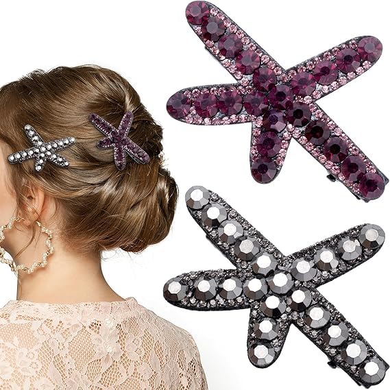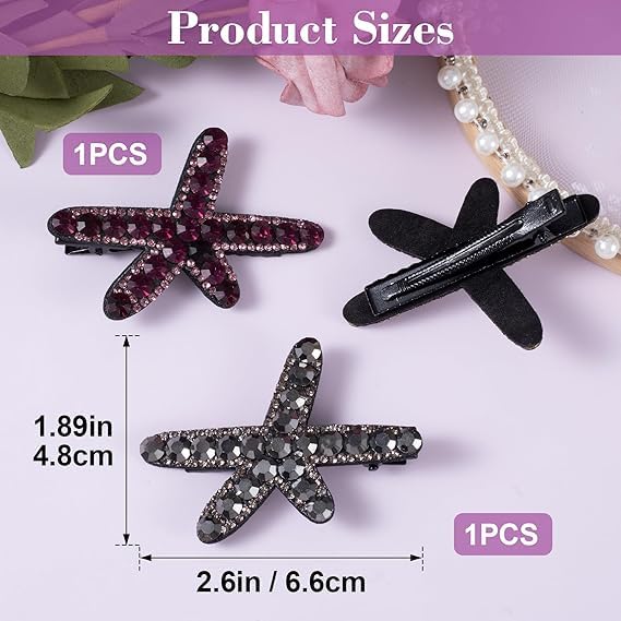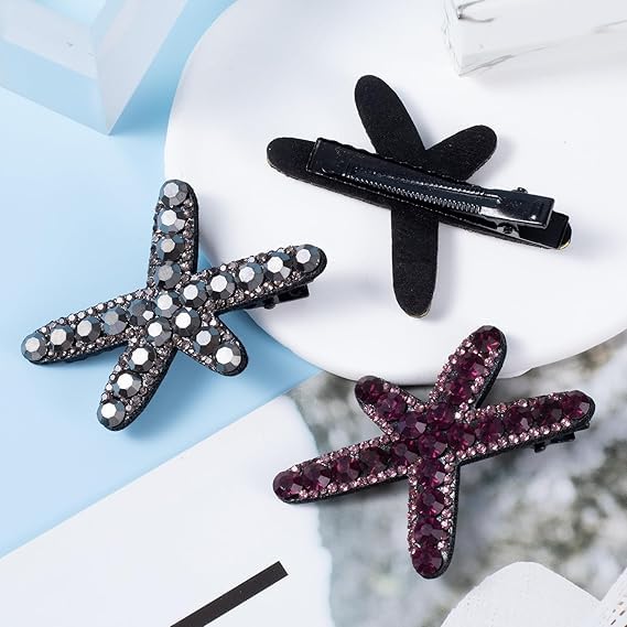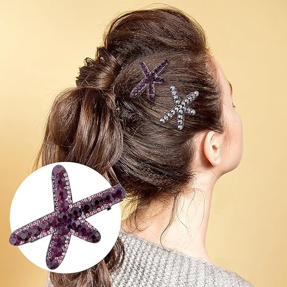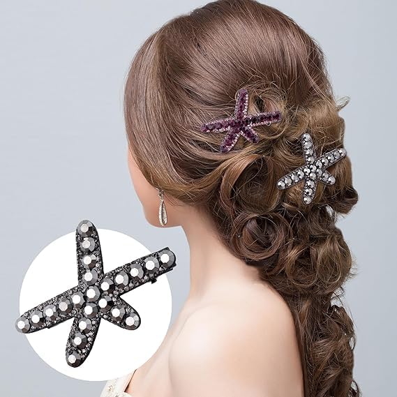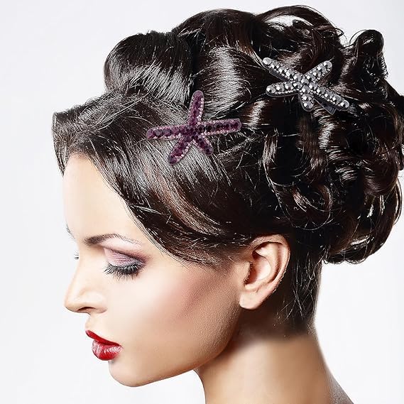 Generic - مشابك شعر على شكل نجم البحر، مشابك شعر مرصعة بحجر الراين، اكسسوارات شعر لحفلات الزفاف للنساء والعروس (اسود، ارجواني)