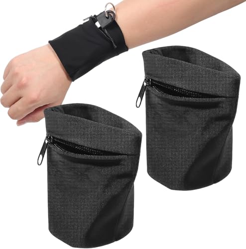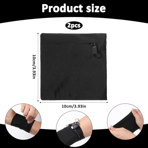 fashion mania - قطعتان من محافظ المعصم للنساء بسوار معصم بسحاب لتخزين بطاقات المفاتيح للنساء والرجال للجري والرياضة والركض والمشي لمسافات طويلة وكرة السلة والتنس (اسود)