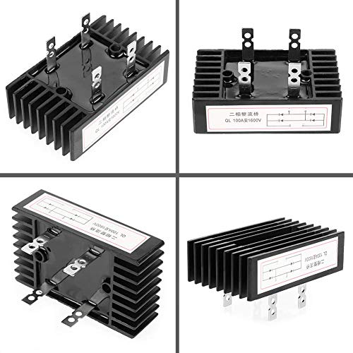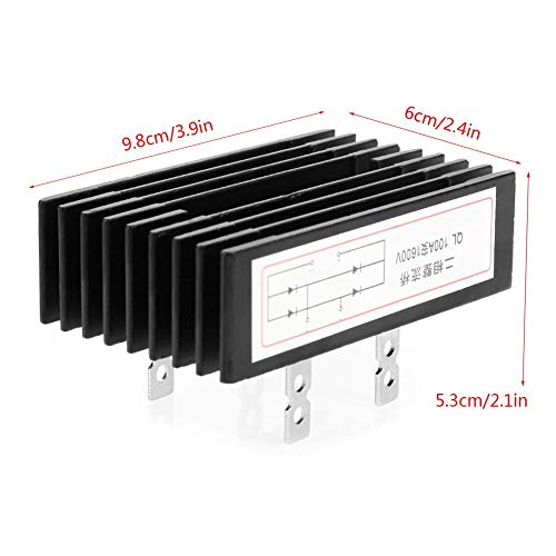 Generic - مقوم جسر ثنائي المرحلتين 100 امبير 1600 فولت عالي الطاقة مع مشتت حراري جيد لتبديد الحرارة صمام من السيليكون للموجة الكاملة اسود مكونات الكترونية