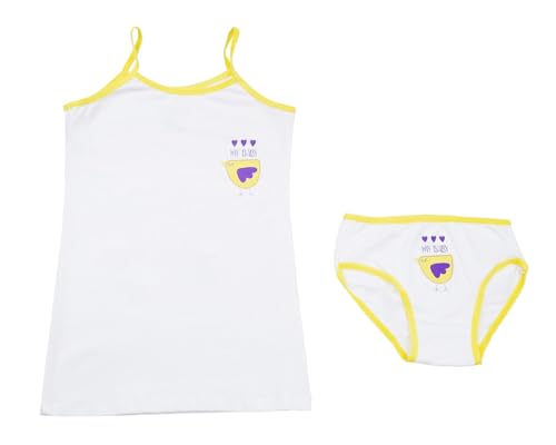 Generic - طقم ملابس داخلية قطعتان، قطن ناعم، توب كاميسول وبانتي، للبنات الصغار، WHTCHK0011-Parent-8