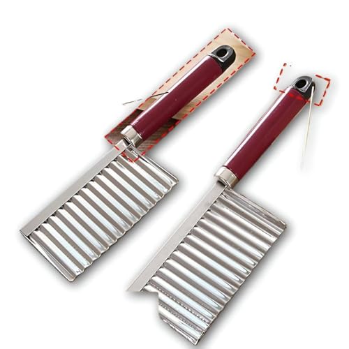 Generic - سكين مجعد من قطعتين - تقطيع البطاطس والجزر والفواكه بدون عناء بشفرة مموجة من الستانلس ستيل ومقبض بني مريح لاعداد امن وانيق.