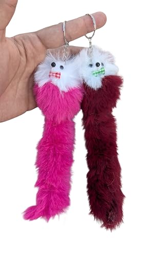 Generic - ميدالية من الفرو قطعتين من ميدالية فرو | الوان متعددة | . لحمل المفاتيح او التعليق فى السيارة او التعليق على الشنطة
