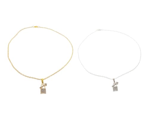 Generic - طقم سلسال كابل معدني أنيق من 2 قطعة لإطلالة متجددة على شكل قفل مقاس قابل للتعديل نسائي والرجال ، فضي وذهبي TON-A-1336