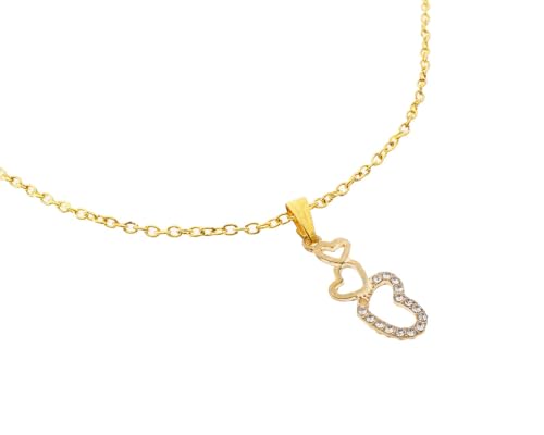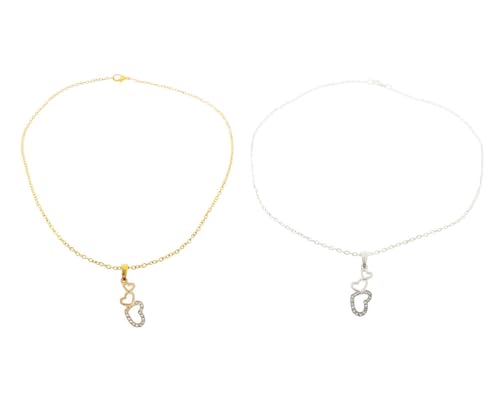 Generic - طقم سلسال كابل معدني أنيق من 2 قطعة لإطلالة متجددة على شكل قلب مقاس قابل للتعديل نسائي والرجال ، فضي وذهبي TON-A-1329