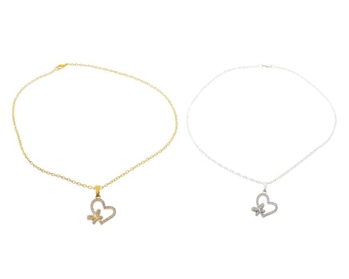 Generic - طقم سلسال كابل معدني أنيق من 2 قطعة لإطلالة متجددة على شكل قلب مقاس قابل للتعديل نسائي والرجال ، فضي وذهبي TON-A-1337