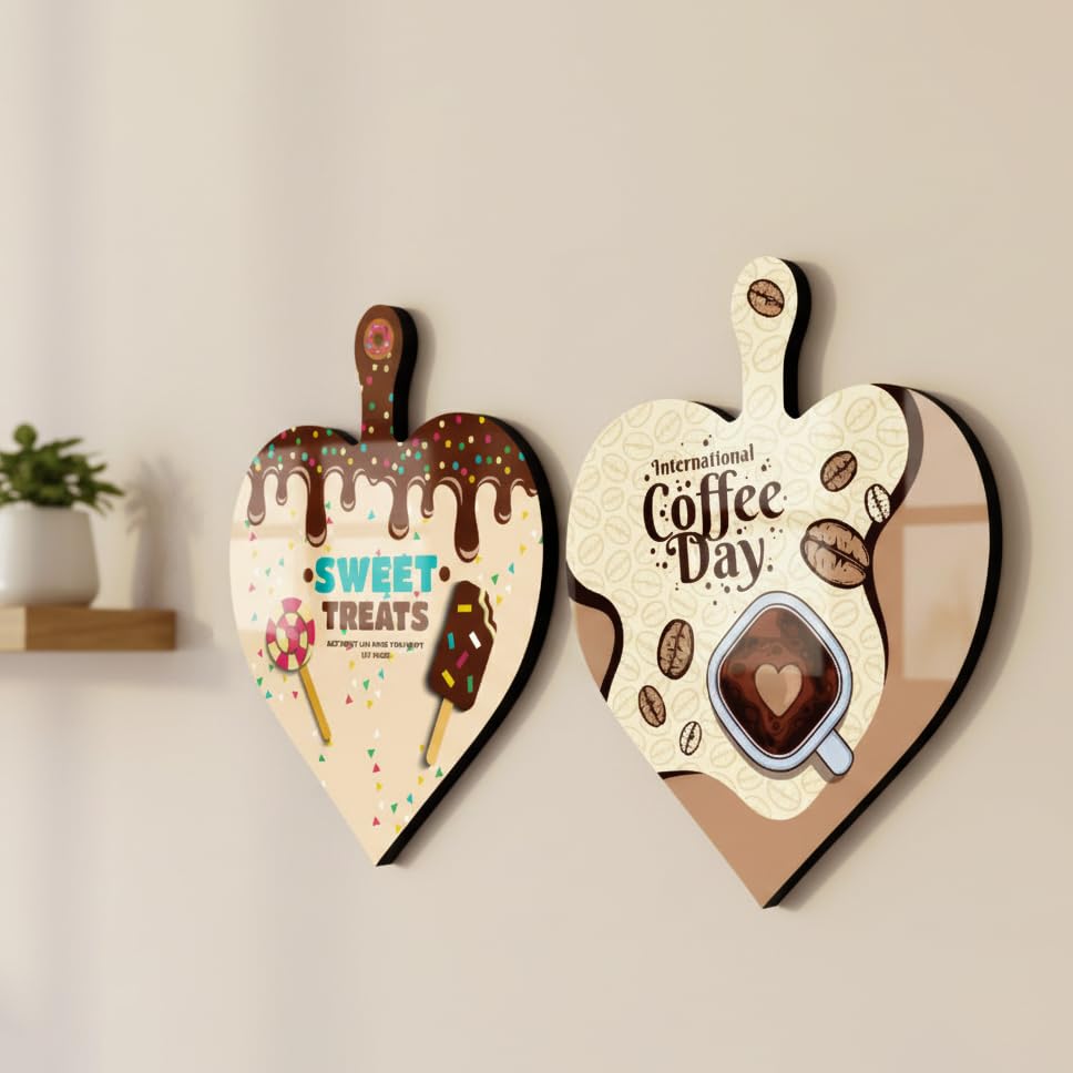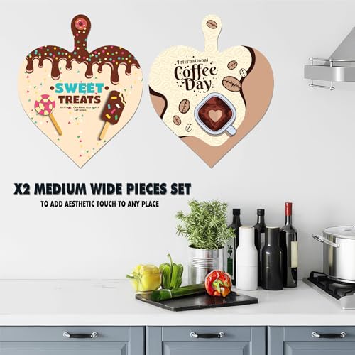 Generic - 2 قطعة ديكور خشبي للحائط بشكل قلب، مقاس 29×18.5 سم، طباعة احترافية لامعة مع طبقة حماية، تثبيت فوري بدبل فيس، مثالية للمطابخ بجميع أنماط الديكور