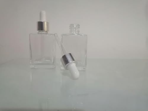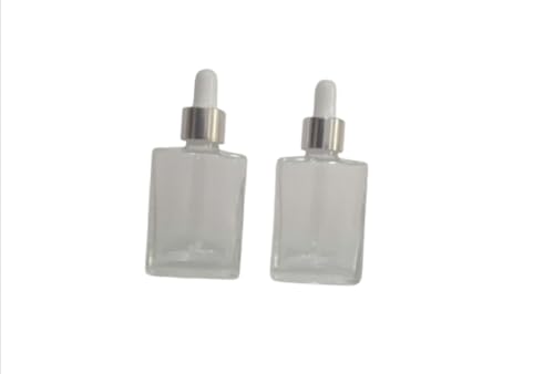 Generic - زجاجات قطارة فارغة مربعة من الزجاج قابلة لاعادة التعبئة والملئ 30 مللي- قطعتان - شفافة وغطاء فضي
