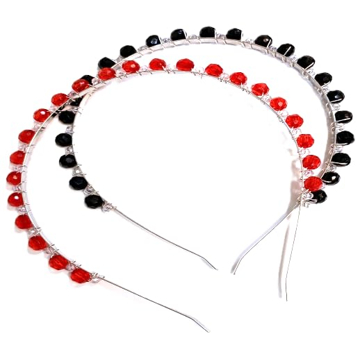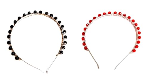 Generic - أربطة للرأس مرصعة بأحجار الراين لوصيفة العروس، شريط رأس كريستال أسود وأحمر لتصفيف الشعر، اكسسوارات شعر للزفاف للنساء والبنات والمناسبات وحفلات الزفاف وأعياد الميلاد، قطعتان