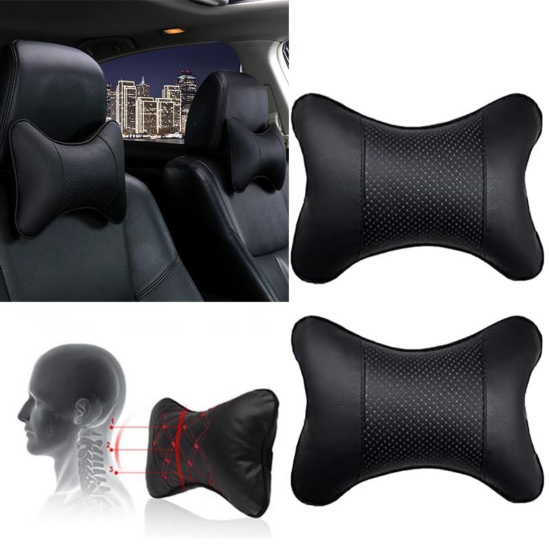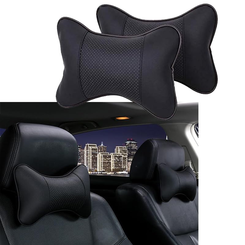 Generic - مخدات مسند رأس للسيارة لدعم الرأس والرقبة لمقعد السيارة من فوم الذاكرة، مخدة رقبة ناعمة ومريحة عالمية لمقعد السيارة للقيادة من كابر تريد، (عبوة من قطعتين - لون أسود)