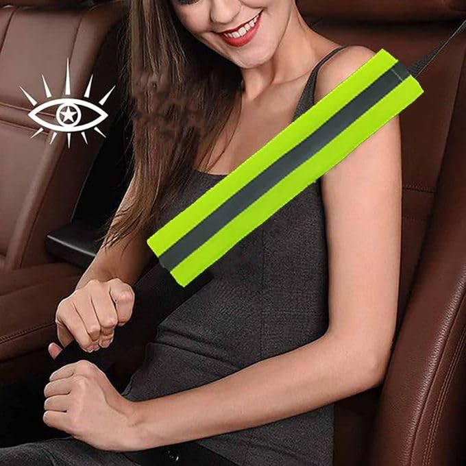 - غطاء حزام الأمان للسيارة، أخضر فلورسنت، يناسب جميع السيارات، من قطعتين.