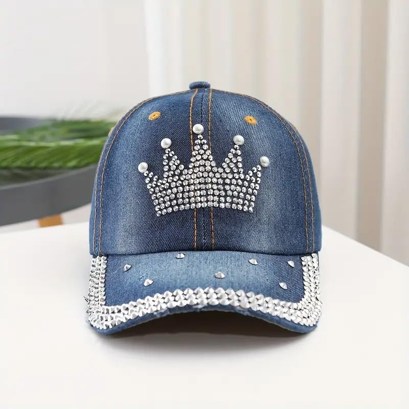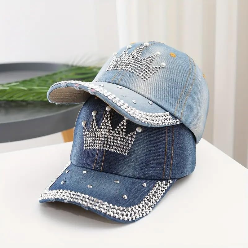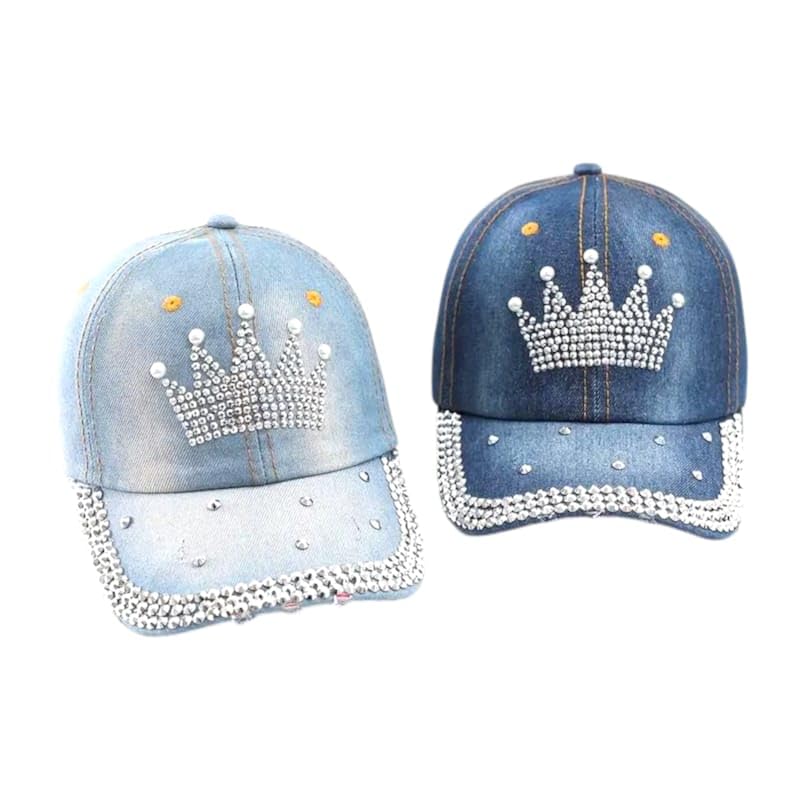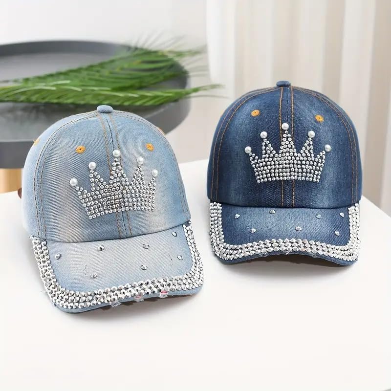 Generic - قبعة بيسبول دنيم مزينة بتاج كريستالي، قبعة كاجوال للخارج، قطعتين
