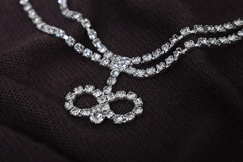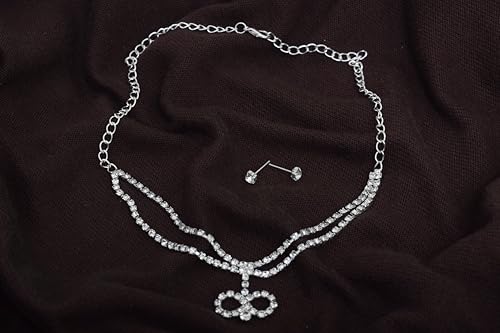 Generic - طقم 2 قطعة طوق رقبة ضيق و أقراط أذن بريمة بتصميم لطيف مرصع كريستال لامع مقاس قابل للتعديل نسائي ، فضي TON-A-1123