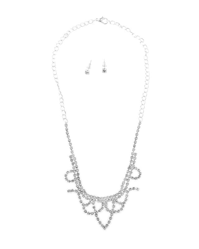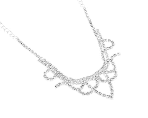 Generic - طقم 2 قطعة طوق رقبة ضيق و أقراط أذن بريمة بتصميم لطيف مرصع كريستال لامع مقاس قابل للتعديل نسائي ، فضي TON-A-1599