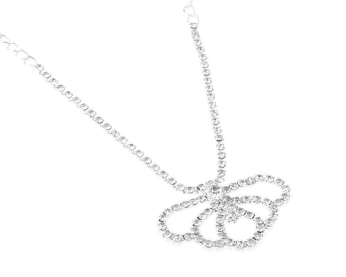 Generic - طقم 2 قطعة طوق رقبة ضيق و أقراط أذن بريمة بتصميم لطيف مرصع كريستال لامع مقاس قابل للتعديل نسائي ، فضي TON-A-1600