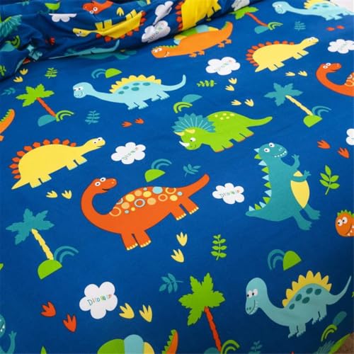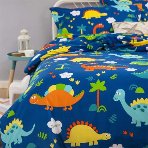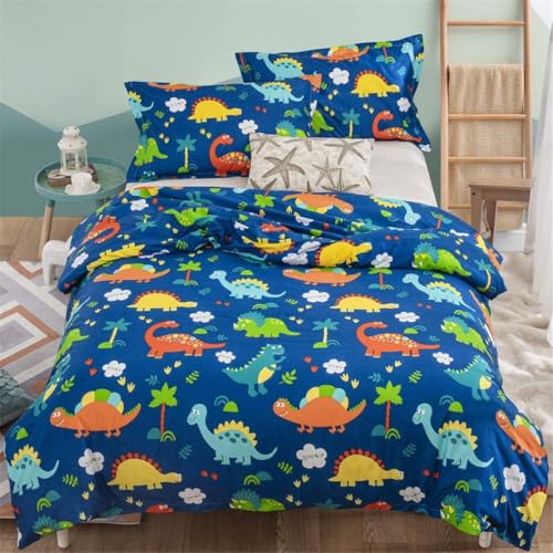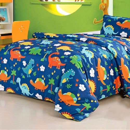 Generic - غطاء لحاف للأطفال بتصميم ديناصور مع كيس مخدة، طقم سرير من قطعتين بطبعة حيوانات بسوستة للإغلاق، غطاء لحاف قابل للاستخدام على الوجهين للأولاد والأطفال - مقاس مفرد 1.35 × 2 م (بدون اللحاف)