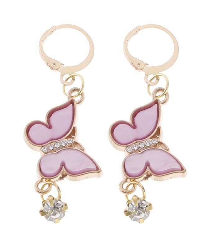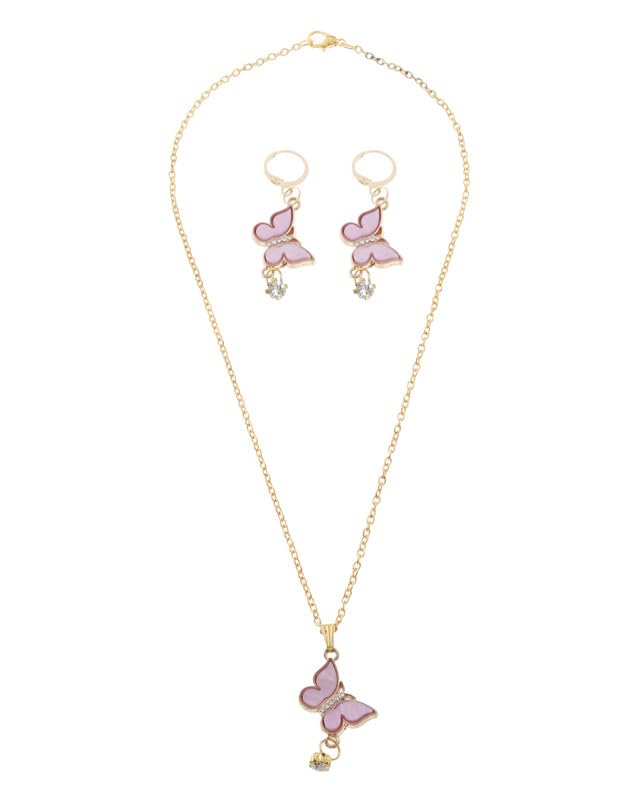 Generic - طقم 2 قطعة سلسلة وأقراط أذن أنيق تصميم عصري بلمسة فاخرة بتصميم لطيف على شكل فراشة مقاس قابل للتعديل نسائي ، ذهبي و زهري TON-A-1140