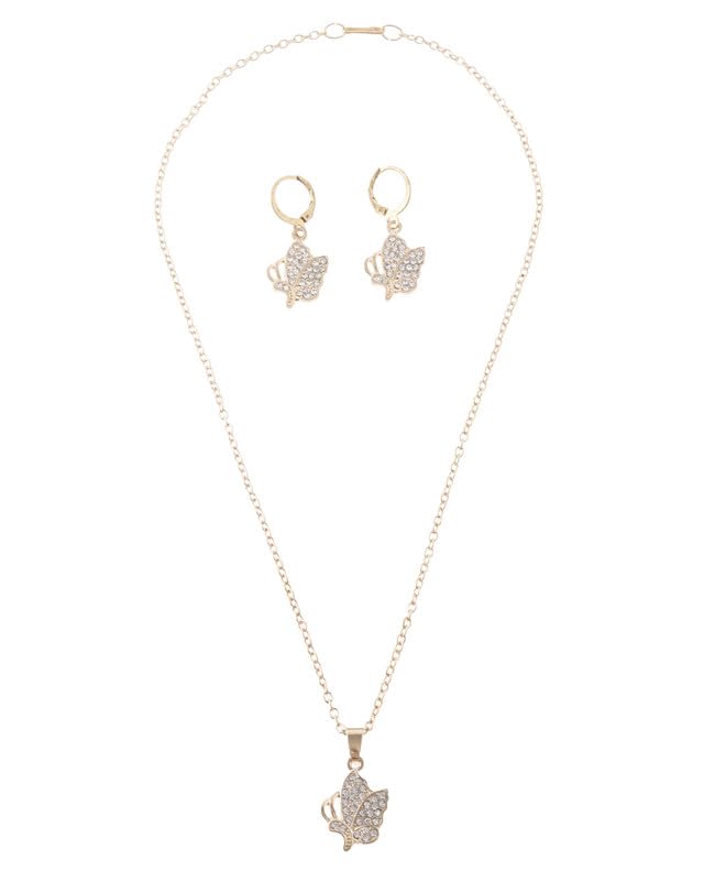 Generic - طقم 2 قطعة سلسلة وأقراط أذن أنيق تصميم عصري بلمسة فاخرة بتصميم لطيف مقاس قابل للتعديل نسائي ، ذهبي TON-A-1133