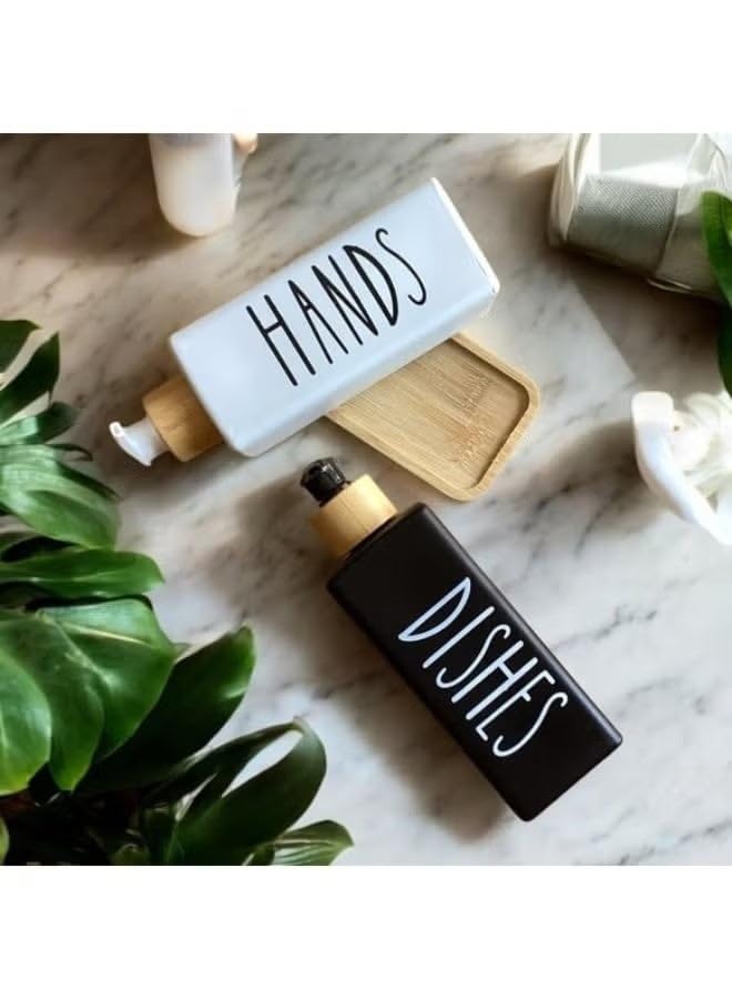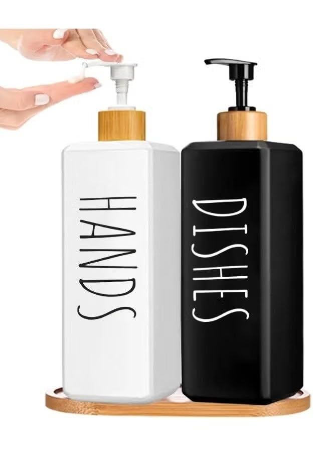 generic - موزع صابون زجاجي من قطعتين مع صينية خشبية للحمام وحوض المطبخ قابل لاعادة الملء متعدد الاغراض، 450 مل (اسود وابيض)