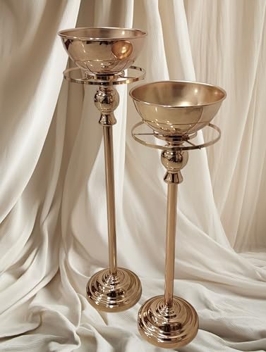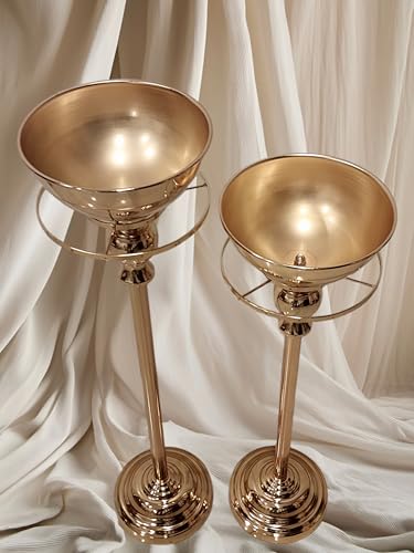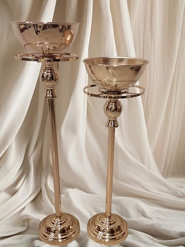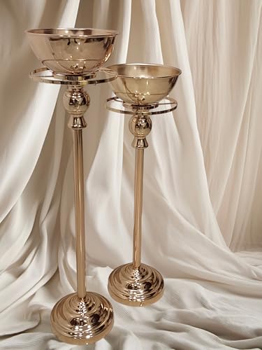 Generic - حامل شموع معدني بلون ذهبي لطاولة الطرقة من قطعتين، شمعدان عمودي لحفلات الزفاف، فازات زهور (لون ذهبي، مقاس 80 سم- 70سم)