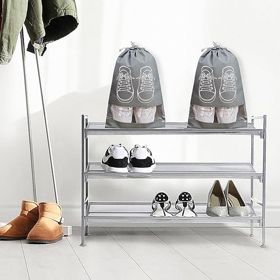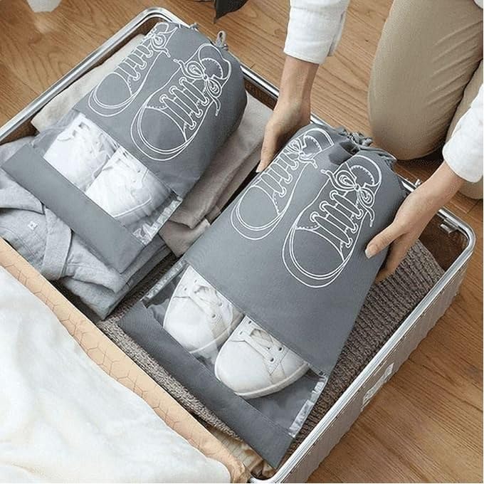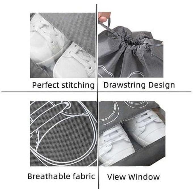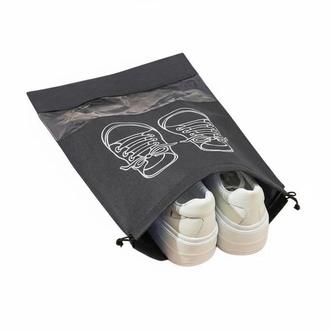 - شنطة احذية للسفر من قطعتين قماش غير منسوج، مقاومة للماء والغبار، شنط برباط للرجال/النساء. منظم تخزين الاحذية مع حبل اللون عشوائى
