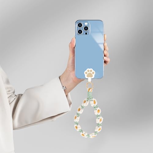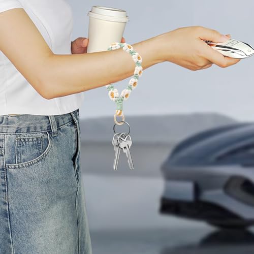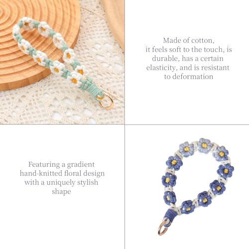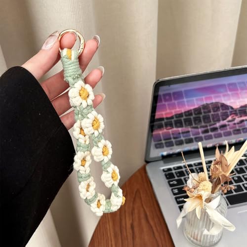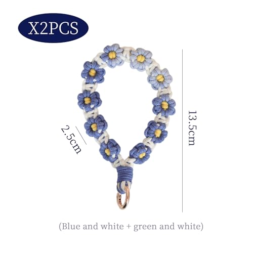 EOWVISN - سلسلة مفاتيح بتصميم زهرة الاقحوان المتدرجة المنسوجة يدويا من قطعتين، سوار معصم مضاد للضياع للهاتف المحمول، ديكور عصري ومحمول.