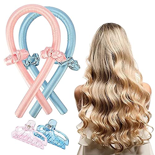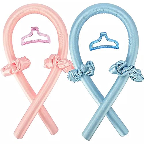 Generic - طوق للراس مرن للنساء من قطعتين بدون حرارة لتمويج الشعر، يمكنك النوم طوال الليل، عمود حريري مموج للشعر الطويل والمتوسط (ازرق + بينك}