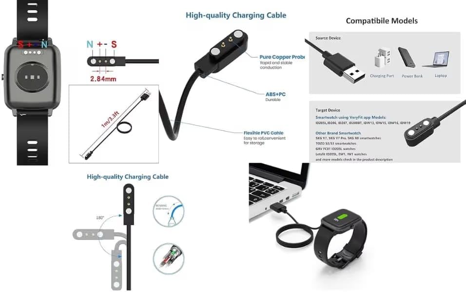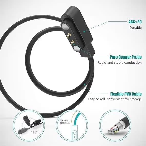 Generic - كيبل شحن USB للساعة الذكية بدبوسين لملحقات سلك شحن الطاقة للساعات الذكية W26/W26+/LS05/QG21/S11/A1/GX08/QS58/TB14/QG21/FT18/Q1R/XS/T9/V20/KC09