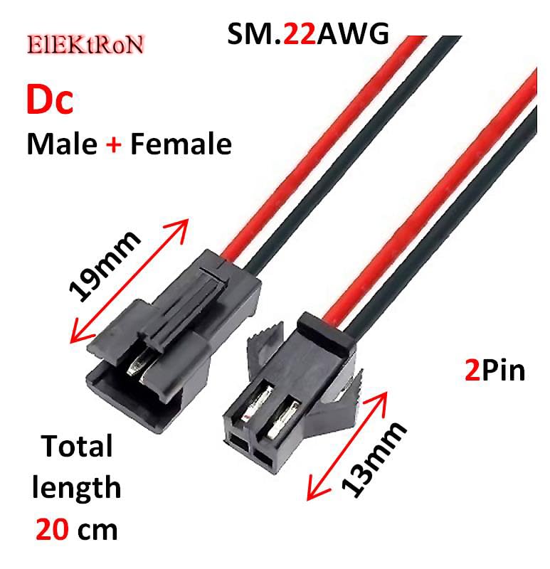- قطعة ذكر وقطعة انثي من كابل الطاقة 2 طرف - دبوس إصلاح موصل مقبس مقبس المنفذ JST SM 2P قابس ذكر + أنثى 2 دبوس LED شرائط مصباح سريع التشغيل طول كابل 20 سم سلك SM.22AWG موصلات محول 22AWG