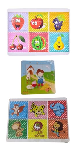Generic - لوح بازل مستطيل بتصاميم فواكه وحيوانات ومربع بازل فتى المزرعة، قطعتان
