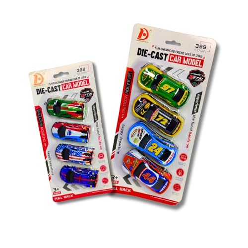 Generic - مجموعتان من سيارات السباق المعدنية 8 سيارات بتصميمات واقعية وألوان زاهية (4 قطع كبيرة + 4 قطع صغيرة) هدية رائعة لعشاق السرعة والتجميع!