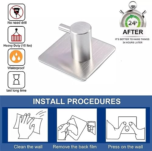 - خطافات من الستانلس ستيل: ستانلس ستيل 304 عالي الجودة، مضاد للتآكل والصدأ، مقاوم للماء، مما يضمن المتانة والموثوقية. خطافات ذاتية اللصق مع حافة مصقولة، ناعمة لا تؤذي المناشف والقبعات والملابس وما إلى ذلك.