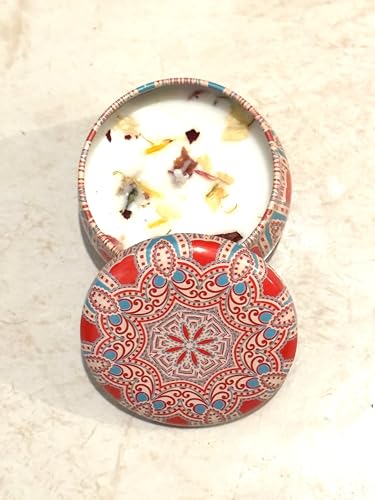 - شموع معطرة من شمع الصويا، علبة معدنية لتزيين المنزل، هدية رائعة لتزيين المنزل في الهواء الطلق، ورود حقيقية وشموع معطرة * شموع لإثراء الحياة - أنماط جميلة بتصميم الموزاييك، مما يعطي لمسة مغربية أو شرقية، للإلهام، كل شمعة صغيرة لها رائحة مشرقة - مثل رائحة اللافندر والفانيليا والورد والليمون والجاردينيا والياسمين والبرغموت وإكليل الجبل والشاموني.