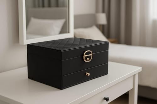 Generic - منظم ساعات وسلسلة من طابقين - يتضمن قسمًا للساعة، ودرج أخير للخواتم والسلاسل وحلقات الأذن، خالٍ من التشابك والمساحة