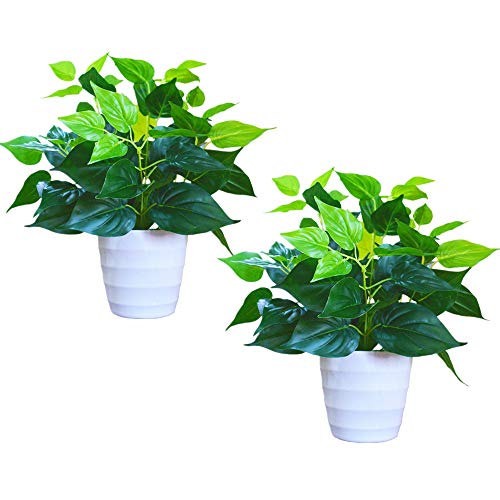 BRXY - نباتات صناعية محاكاة بوعاء نباتات خضراء داخلية صغيرة بونساي غرفة المعيشة الرعوية، نباتات صناعية في اصيص عشب اخضر صناعي للمكتب وديكور المنزل (اصيص بيضاء)، من جولان، عدد القطع: 2