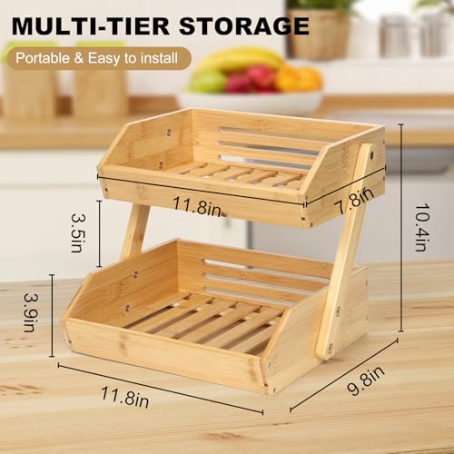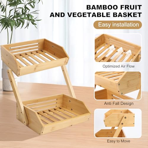 LepoHome - حامل فاكهة من الخيزران بطبقتين من ليبو هوم لتنظيم طاولة المطبخ والخضروات والخبز والوجبات الخفيفة بسمك 15 ملم لمتجر الفواكه (تجميع ذاتي)