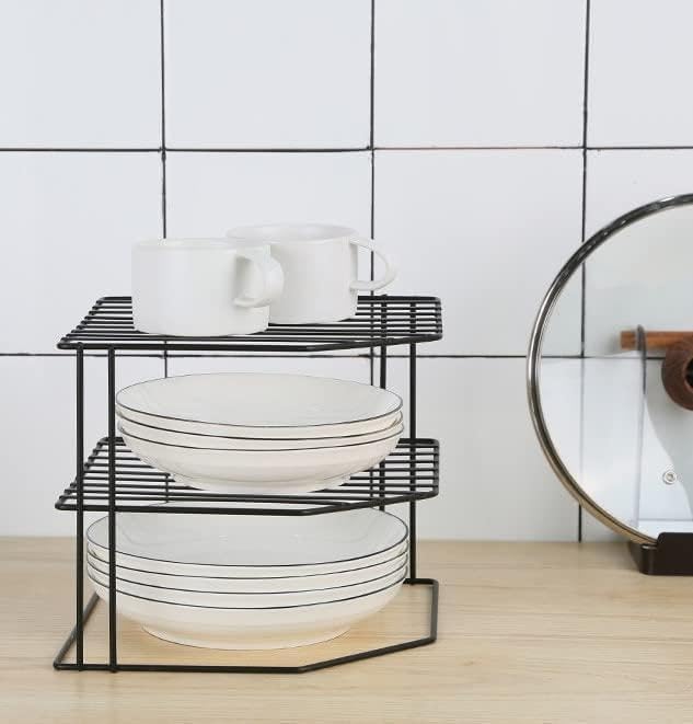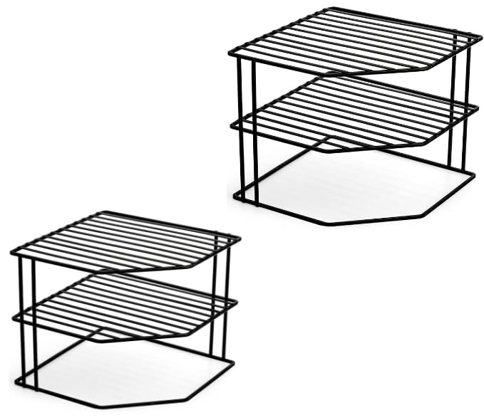 Generic - منظم طاولة مطبخ من مستويين، رف تخزين معدني اسود، رف خزانة موفر للمساحة (2)