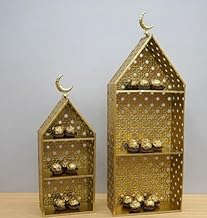 - الأبعاد: يتميز بطبقتين مرتفعتين مع تباعد واسع بين المستويات لارتفاع العناصر المختلفة، يتناسب بشكل أنيق مع زوايا المنضدة