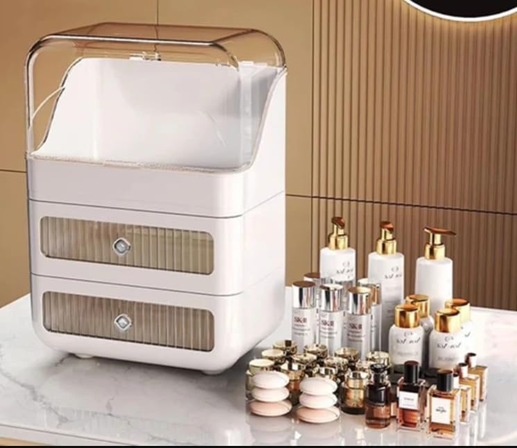 Generic - منظم مع مقبض لتخزين مستحضرات التجميل من طبقتين، بلاستيك أبيض، 35 × 25 سم