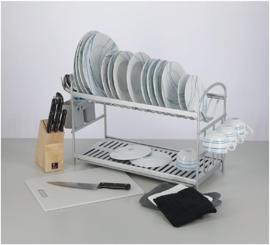 - ارتقِ بتنظيم مطبخك مع رف التجفيف المتعدد الطبقات المصنوع من الألمنيوم المقاوم للصدأ.