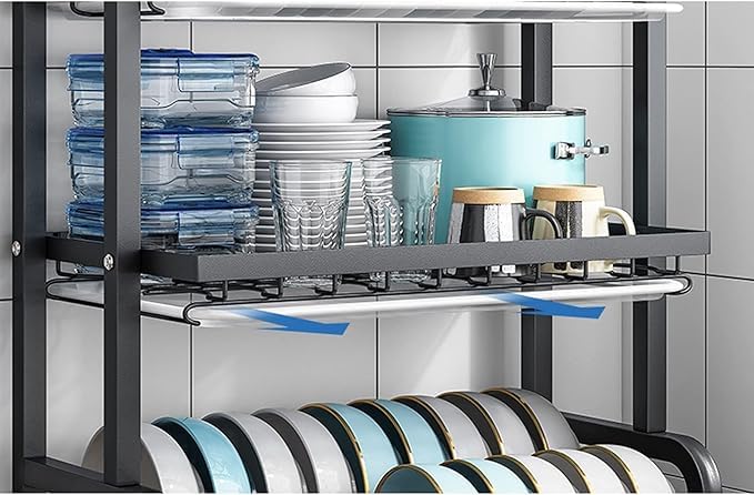 Generic - رف تجفيف الاطباق من طبقتين، منظم تخزين المطبخ، حامل اطباق بسعة كبيرة، اسود
