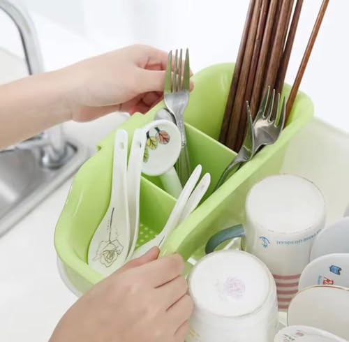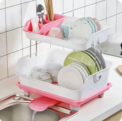 - تصميم مبتكر: رف أطباق بمستويين مع صينية تصريف وحامل أدوات متعدد الاستخدامات للمطبخ
